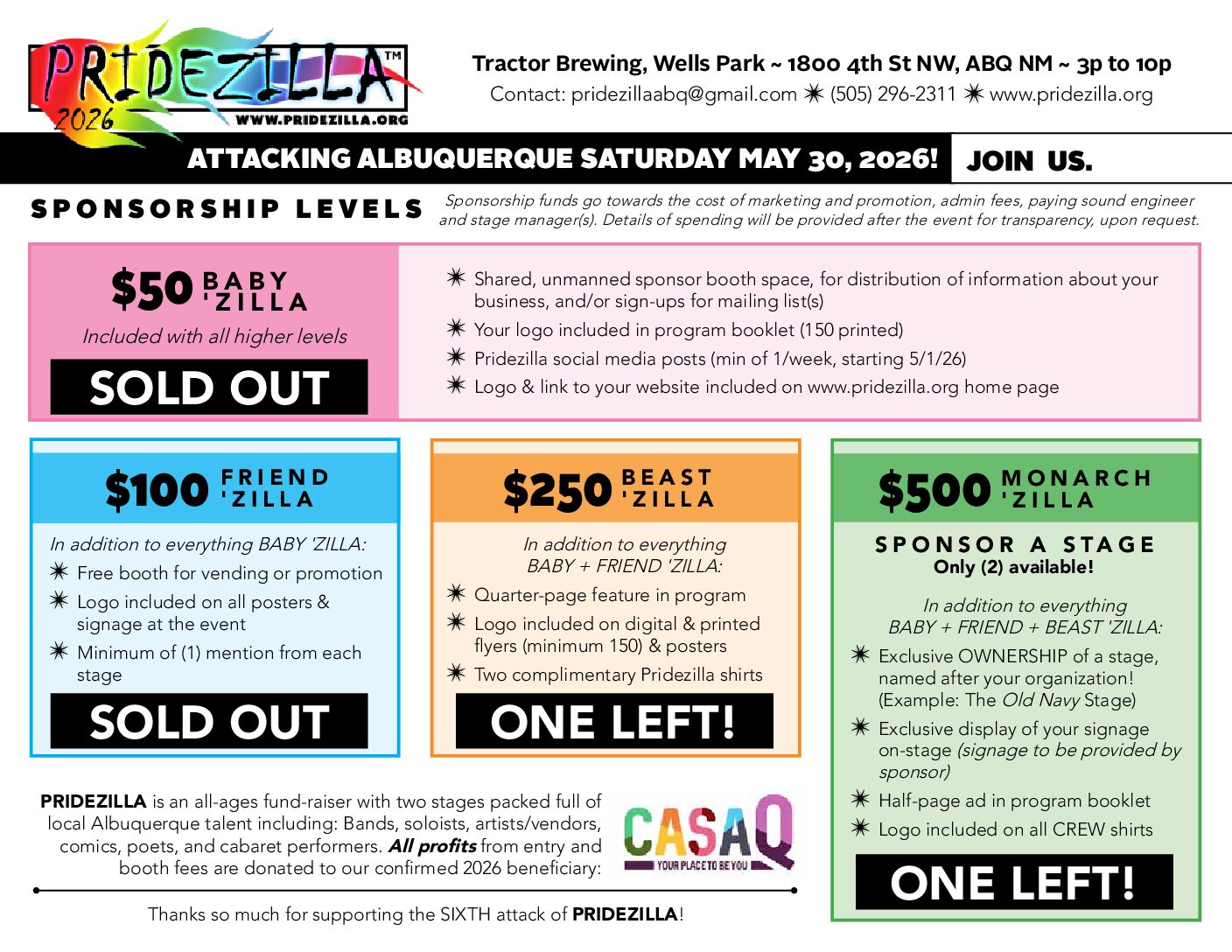 Pridezilla social media posts: Minimum of 1 per week, starting 5/1/26